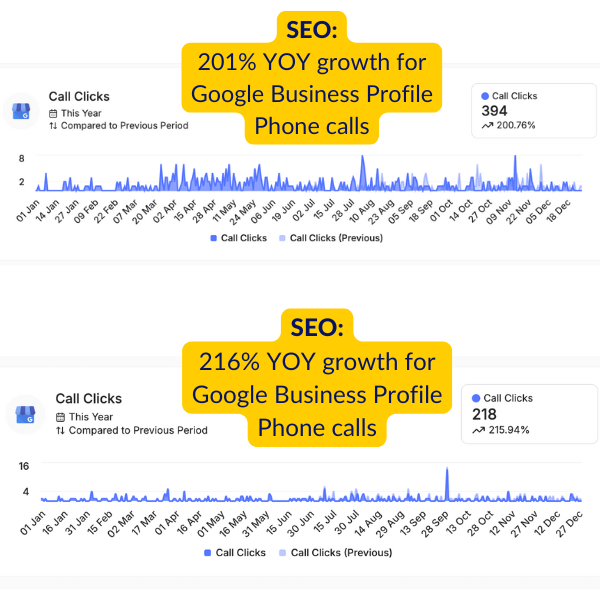 Real numbers from real clients. What you're seeing below is what happens when a properly built website meets a local SEO strategy that's actually being worked every single month.